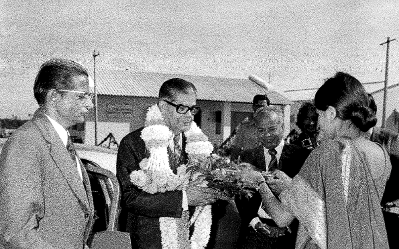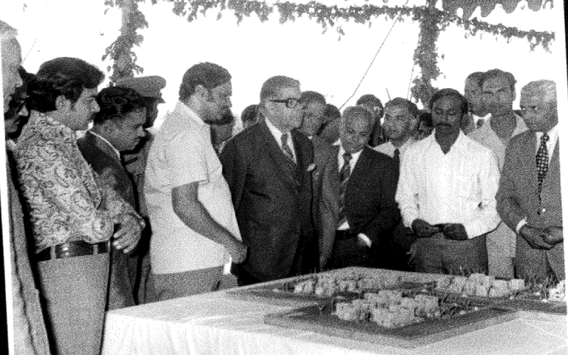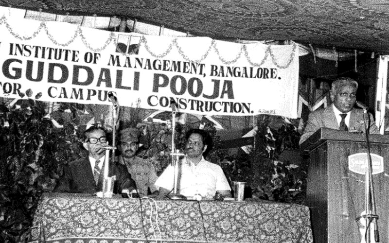 Karnataka Governor Shri Govind Narain at the Ground-breaking ceremony of the Bannerghatta Road Campus on 27th November 1978. Prof. S. Subba Rao, Director-in-charge looks on