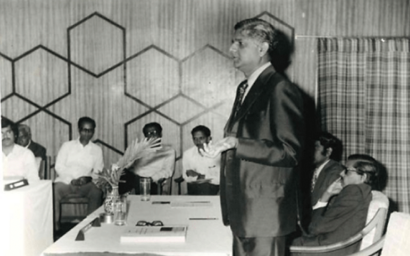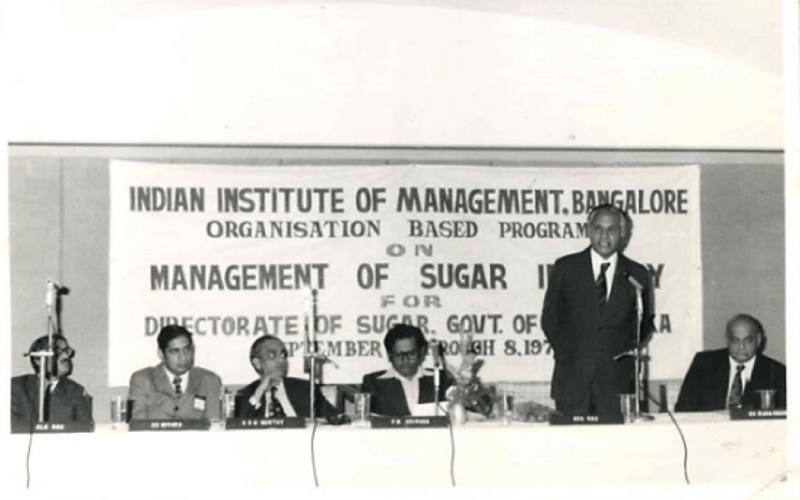 Mr. G.V.K. Rao addressing the audience. Prof. N.S. Ramaswamy, Director, IIMB to the right.