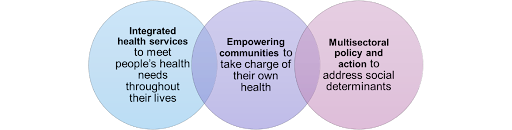 Primary Health Care is the foundation of a comprehensive, community-based approach to health systems - providing preventive, promotive, curative, and rehabilitative services close to communities through three key pillars: integrated services, empowered communities, multisectoral action.