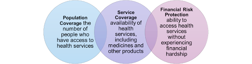 Universal Health Coverage ensures everyone can access essential and quality health services without financial hardship through population coverage, service coverage and financial risk protection.