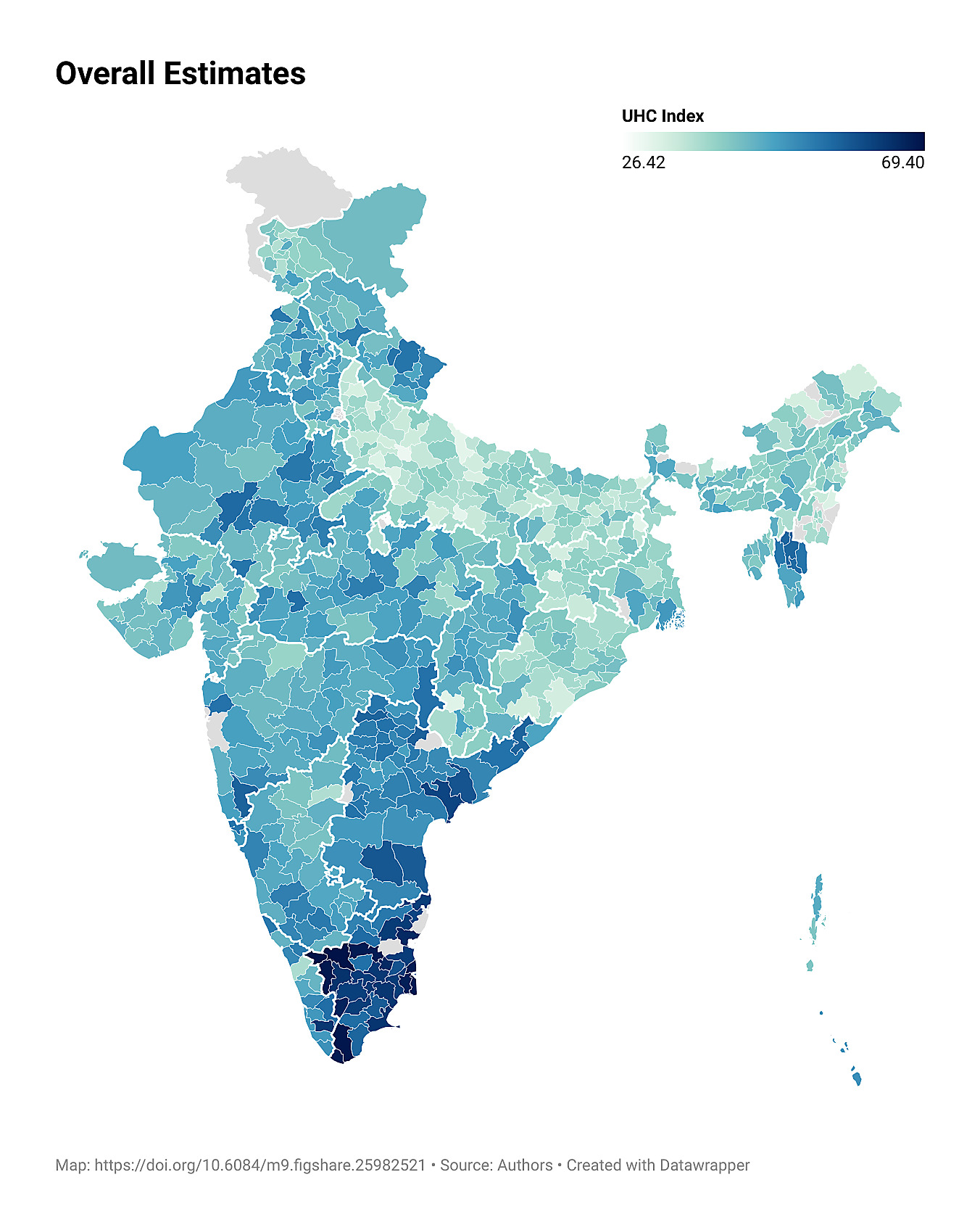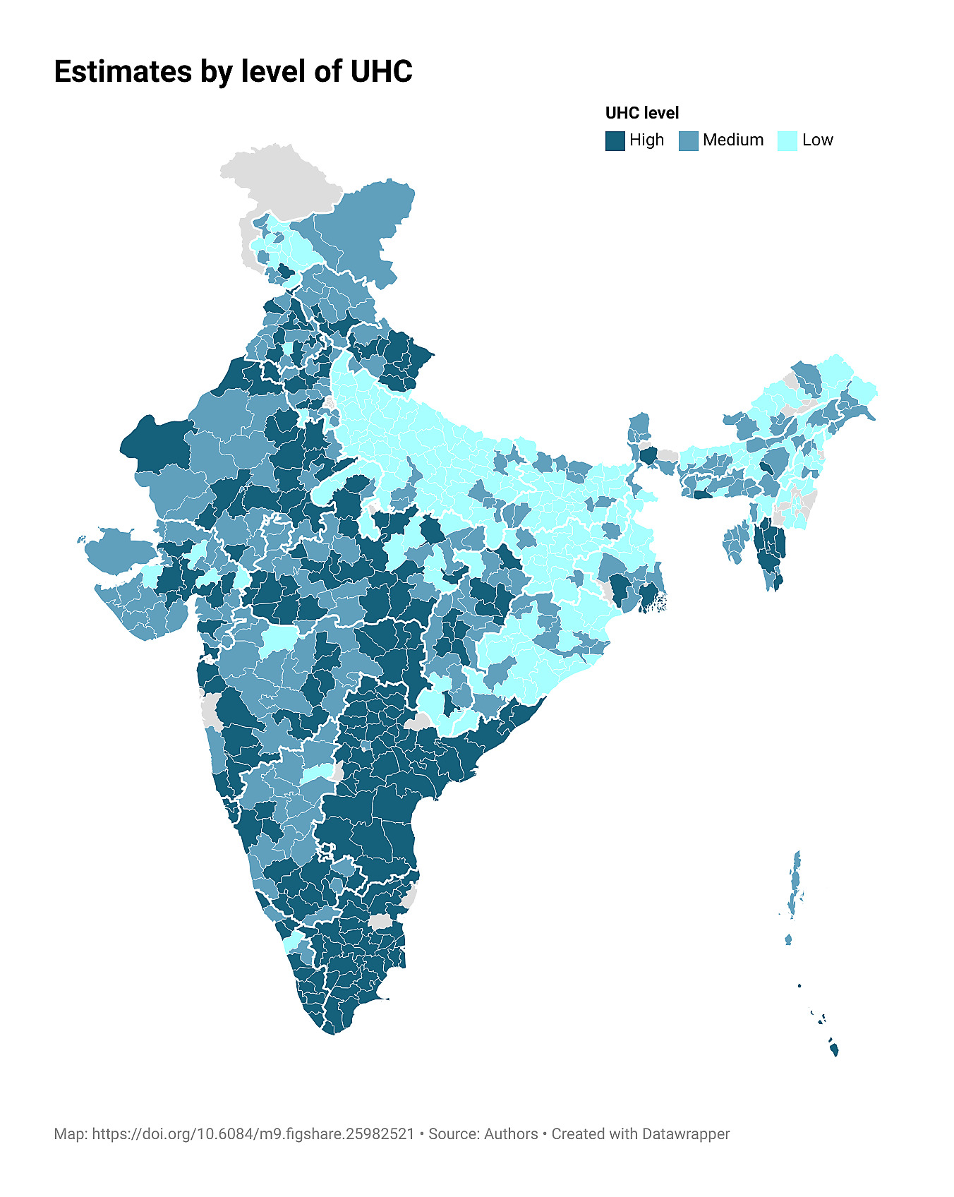 In India’s federal health system, states have taken diverse routes towards UHC. State-level priorities have shaped diverse reforms, models and pathways, further influenced by contexts and resources. Research led by investigators in this consortium using an adapted WHO-World Bank UHC Index has found wide variation in UHC levels across the country. (Mukherji et al. 2024) Drawing on earlier in-depth qualitative health system research, we found how context – including epidemiological stages, health system structures, socio-political history – have shaped India’s many pathways to UHC. For instance, in states with a strong history of community engagement tend to emphasise decentralised, bottom-up approaches while others have focused on expanding health insurance coverage.